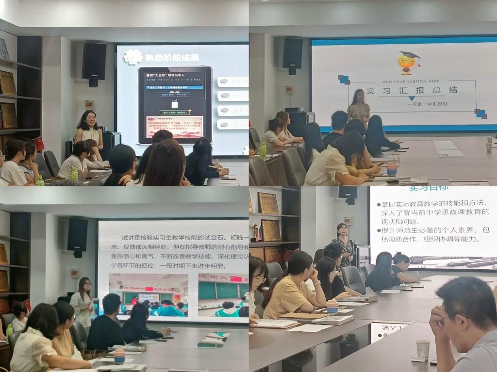 教育教学实践是教育硕士成长中的重要培养环节,是锤炼教育硕士教学技能和提升综合素养的“练兵场”和“试验田”。在天水市第一中学(麦积校区)、天水市第二中学和天水市逸夫实验中学三个实践教学基地参加集中实践教学的23名2022级学科教学(思政)教育硕士近日圆满完成实践教学任务返回学校。7月4日下午,澳门网投唯一官网举行教育硕士集中实践教学汇报会,研究生导师和2022级学科教学(思政)教育硕士参加,2023级学科教学(思政)教育硕士旁听观摩。汇报会由刘建军院长主持。