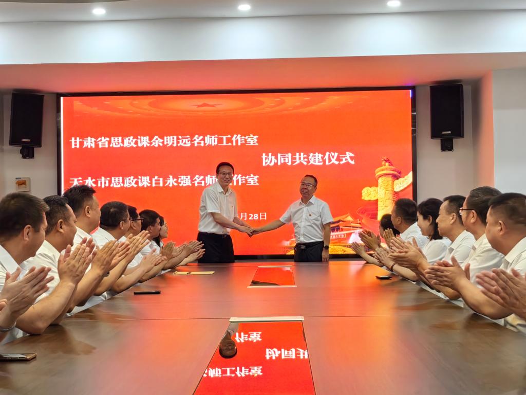 主题党日活动后,甘肃省思想政治理论课余明远名师工作室与天水市思想政治理论课白永强名师工作室举行协同共建启动仪式,双方就协同共建的内容、方式和机制充分交流。