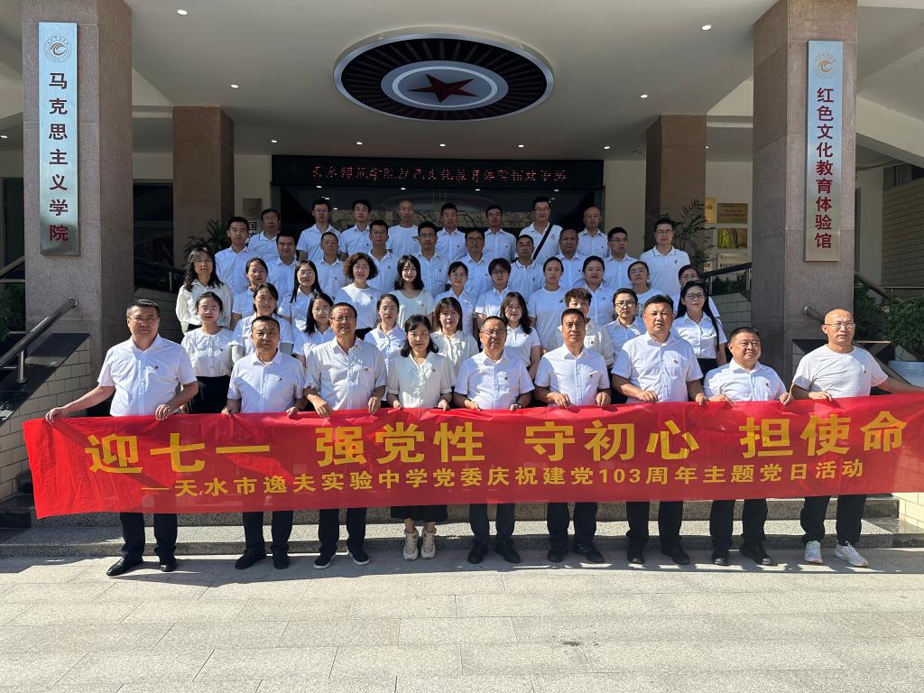6月28日,天水市逸夫实验中学党委书记白永强带领全校党员教师在天水师范学院红色文化教育体验馆,与甘肃省思想政治理论课余明远名师工作室共同开展“迎七一 强党性 守初心 担使命——庆祝建党103周年主题党日活动”。
