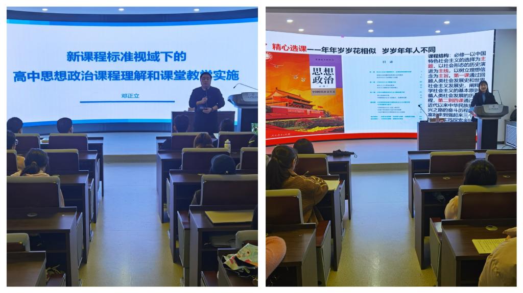 10月25日至26日,澳门网投唯一官网邀请西安市教科院高中思政课教研员邓正立,西安市经开区第一中学教师尚姝君在红色讲堂分别为学院师生作题为《新课程标准下的高中思想政治课程理解和课堂教学实践》的学术报告和题为《一节优质课的前世今生》的示范教研。学院教师、研究生、本科生共100余人参加。