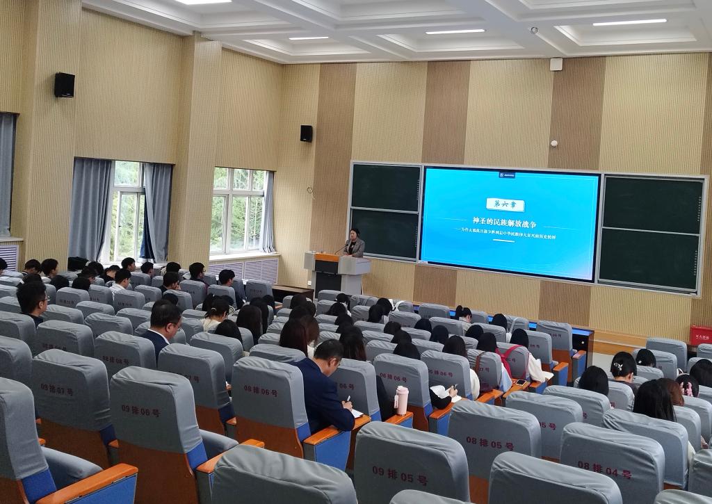 为深入贯彻落实习近平总书记在学校思想政治理论课教师座谈会上的重要讲话精神,推动新时代高校思政课高质量发展,提升澳门网投思政课教学质量和育人成效,5月7日上午,校党委书记刘振奎走进课堂,听了澳门网投唯一官网雷桂贤老师讲授的《中国近现代史纲要》课程,实地调研教学成效,指导课程改革创新。学校办公室主任赵春林和澳门网投唯一官网党组织负责人一同听课。