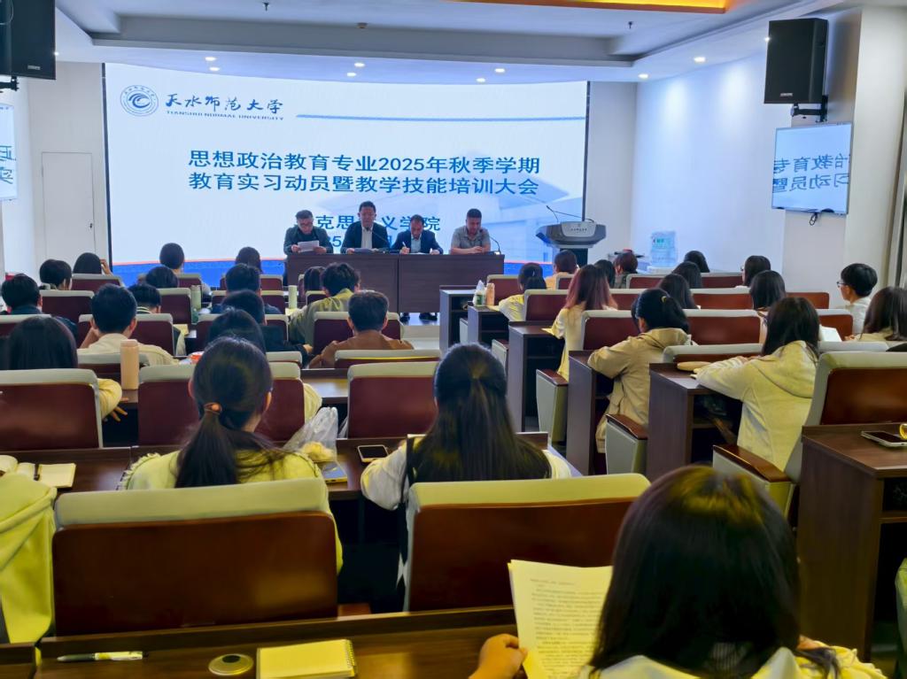 为扎实推动2025年秋季学期2022级思想政治教育专业教育实习工作有序高效开展,切实提升学生的教育教学实践能力。8月28日至29日,澳门网投唯一官网在红色讲堂隆重举行教育实习动员暨教学技能培训大会。学院党委书记陈俊亮、院长刘建军、党委副书记李海涛出席会议,2025年秋季学期全体实习生参加。会议由思政系主任吴亚辉主持。