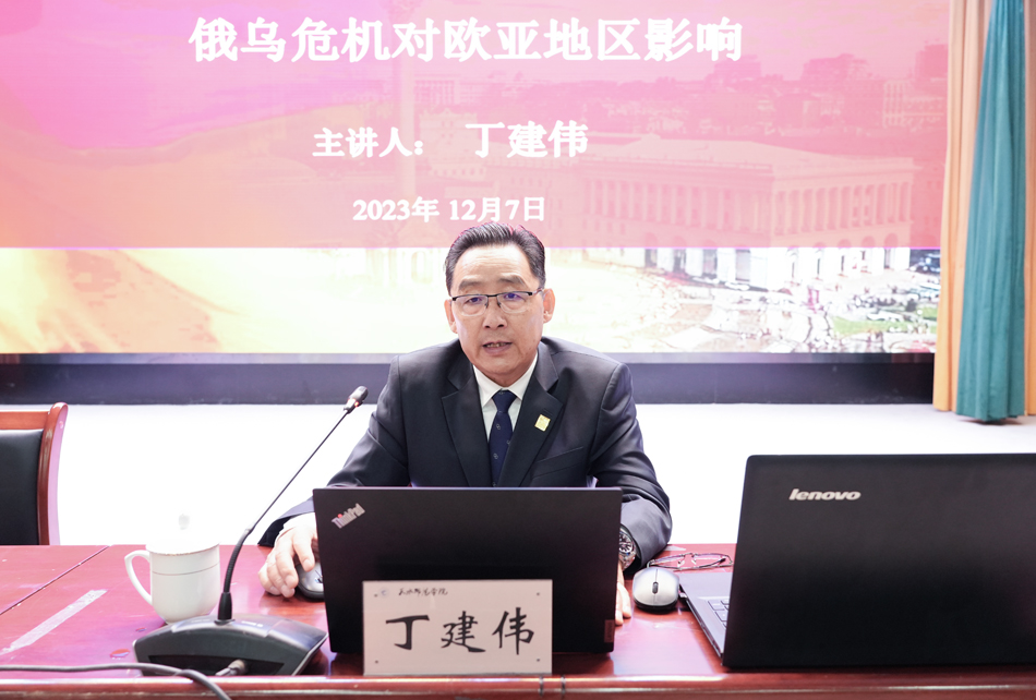 丁建伟介绍了乌克兰的现状,全面剖析了俄乌危机爆发的多重原因、提出了对危机前景的判断。他通过详实的数据、丰富的资料,结合自身工作阅历和学术研究成果,深刻阐述了俄乌危机对国际局势、欧亚地区各国的发展和“一带一路”建设的重大影响。丁建伟详细解读了中国政府对俄乌危机的原则立场,指出中国政府始终保持客观公正,根据事情本身的是非曲直,独立自主地作出判断,一直为劝和促谈发挥建设性作用,并积极提供中国智慧和中国方案。
