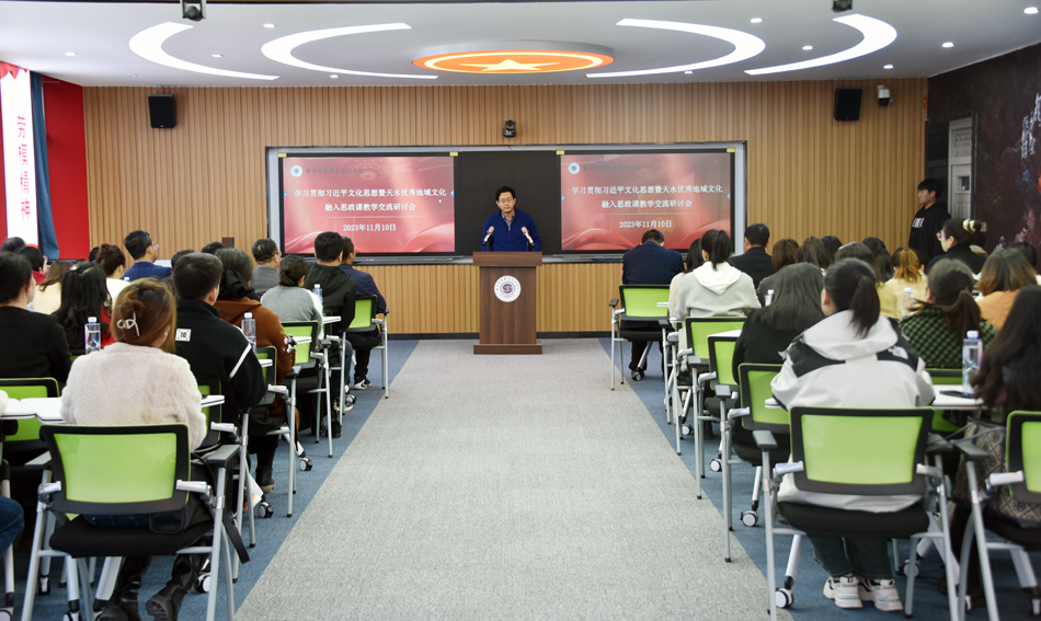 为深入学习贯彻习近平文化思想,充分挖掘天水优秀地域文化,探索天水优秀地域文化融入高校思政课教学的路径,为思政课建设提供鲜活丰富的育人资源、多维的教学时空场域,11月10日下午,驻天水市四所高校澳门网投唯一官网共同主办的学习贯彻习近平文化思想交流研讨会在甘肃机电职业技术学院举行。天水师范学院、甘肃林业职业技术学院、甘肃工业职业技术学院、甘肃机电职业技术学院等四所高校澳门网投唯一官网负责人、教师代表共50余人参加。天水师范学院澳门网投唯一官网党委书记刘建军、甘肃省思政课余明远名师工作室成员参加。