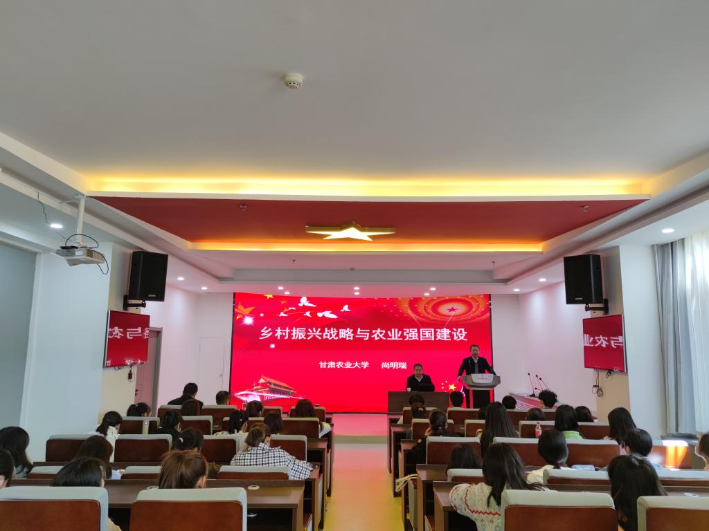 为扎实推进学院“三抓三促”工作深入开展,3月31日下午,甘肃省高校思想政治理论课教学指导委员会委员、甘肃省思想政治理论课名师工作室主持人、甘肃省大中小学思政课一体化建设指导委员会专家、甘肃省广播电视总台农村广播“智库专家”、甘肃省人民政府参事室特约研究员、甘肃农业大学甘肃农村发展研究院执行院长尚明瑞教授应邀来校作学术报告,澳门网投唯一官网、甘肃省思想政治理论课余明远名师工作室共100余名师生聆听了报告。报告会由澳门网投唯一官网党总支书记刘建军主持。