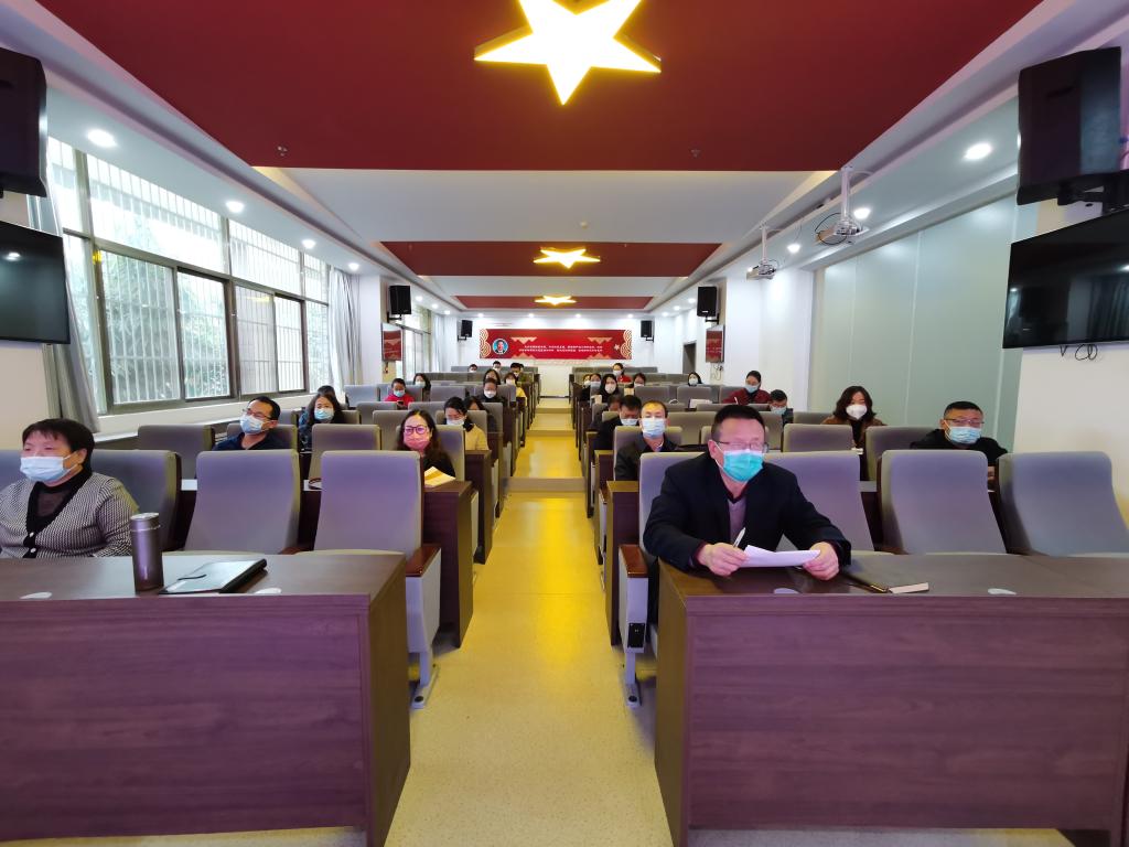 10月27日下午,澳门网投唯一官网在红色讲堂组织全体教职工深入学习党的二十大报告,党总支书记刘建军围绕党的二十大精神作专题辅导报告。张敬花副院长主持会议。
