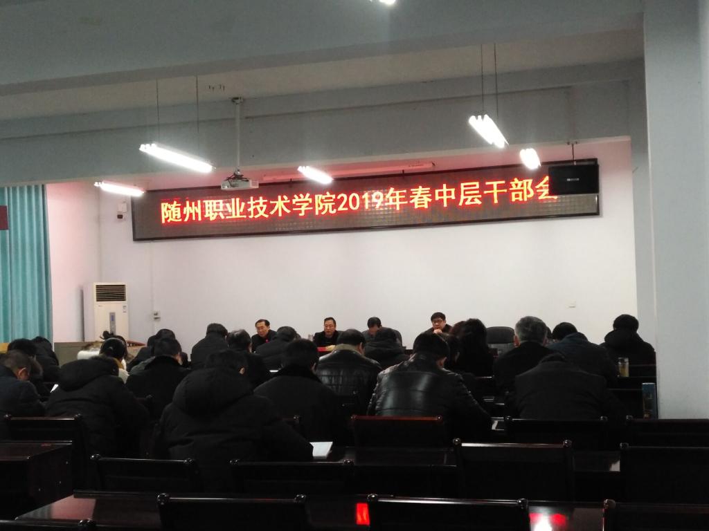 党委书记李德荣同志作总结讲话。他指出,在全院教职工的努力下学院已迈入良性发展新阶段,要求全院中层干部一是要明确学院当前历史方位、进一步增强奋力实现“随职梦”的自信,二是要准确把握省市纪委会议精神、坚定不移纵深推进全面从严治党治校,三是要积极行动起来、奋力夺取全年各项工作开门红。