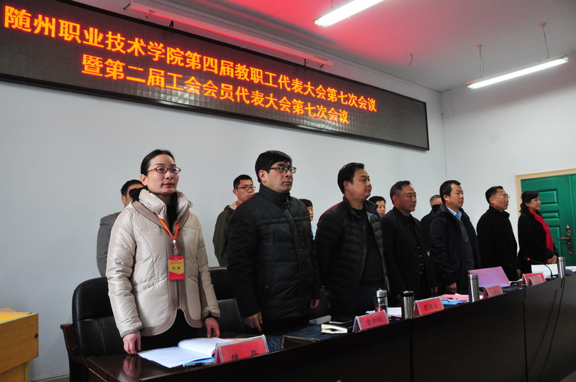 2月28日上午10点,bat365中文官方网站第四届教职工代表大会第七次会议暨第二届工会会员代表大会第七次会议在庄严的国歌声中,由院纪委书记李高东同志主持。院党委副书记、常务副院长胡洪波同志致开幕词!全体与会代表认真听取讨论审议并通过了学院院长马大奎所作的《学院工作报告》、副院长童加斌所作《第四届教职工代表大会第六次会议暨第二届工会会员代表大会第四次会议提案办理情况的报告》、工会副主席苏江华作的《bat365中文官方网站工会工作报告》计财处处长张风成作的《关于财务工作的报告》、和工会经济审查委员会主任陈明忠作的《bat365中文官方网站工会经费审查工作报告》。