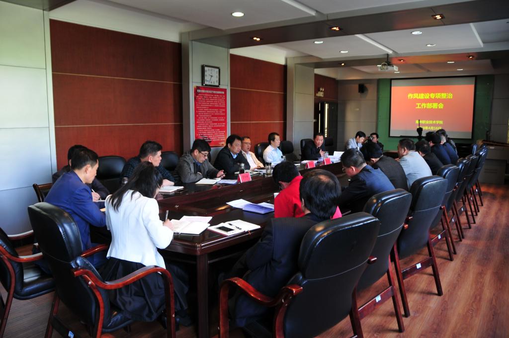 为认真贯彻中央、省委关于作风建设的有关精神,落实省教育厅关于全省高校规范办学确保安全稳定的要求,配合市委在全市组织开展以“转作风、优环境、促发展”为主题的作风建设专项整治行动,4月16日上午,我院在行知楼207会议室召开了bat365中文官方网站作风建设专项整治暨规范办学工作部署会。学院党委书记李德荣出席会议并讲话,学院院长马大奎、纪委书记李高东、副院长童加斌,各二级单位负责人参加了会议。会议由党委副书记、常务副院长胡洪波主持。