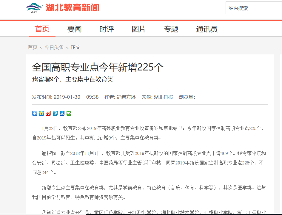 在建设“特色随职”,助力“品质随州”发展,奋力打造“全国知名全省一流职业技术学校”的路上,各项工作捷报频传,各级媒体聚焦特色随职的发展,特色随职得到了社会的广泛关注。2019年上半年,省级主流媒体43次聚焦随州职院,打造了学校的社会形象,进一步提升了学校的社会美誉度和社会影响力。