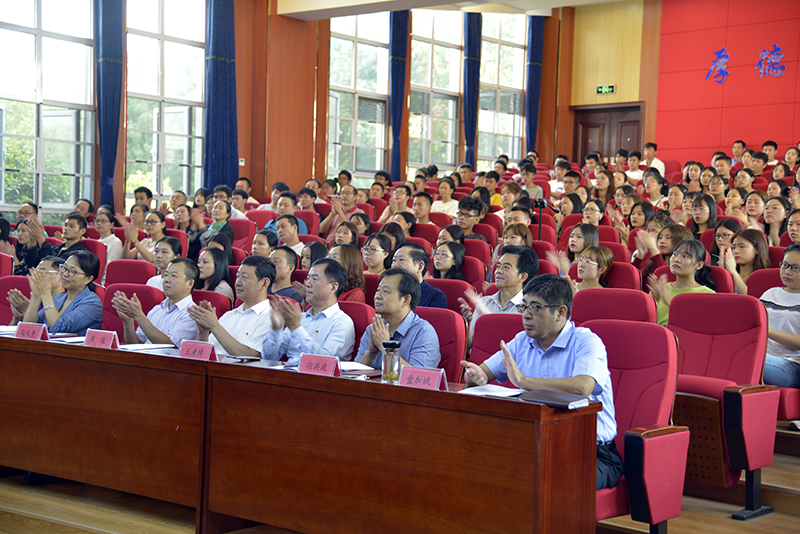 9月27日上午,在喜迎国庆70周年即将到来之际,由省委组织部、省委老干部局、省委教育工委组织的2019年湖北省老干部讲好中国故事宣讲团•bat365中文官方网站报告会在bat365学术报告厅举行。武汉市武昌区原巡视员,全国优秀共产党员、全国道德模范、全国离退休干部先进个人吴天祥同志;全省离退休干部模范、荆门市农业局退休干部、“农技120”陈再明同志;恩施州来凤县融媒体中心记者,深藏功名、坚守初心的老英雄张富清同志先进事迹报告人向梓涵同志;省老年大学干部、我省毕生爱党为民、清正廉洁的老共产党员沈因洛同志先进事迹报告人张婷同志,现场分享了感人事迹,给师生上了一堂生动、深刻的思政课。省委老干部局相关部门负责人,bat365全体校领导、全体中层干部、党员代表、思想政治教育工作者代表、离退休干部代表、师生代表等参加会议。会议由学院党委书记李德荣主持。