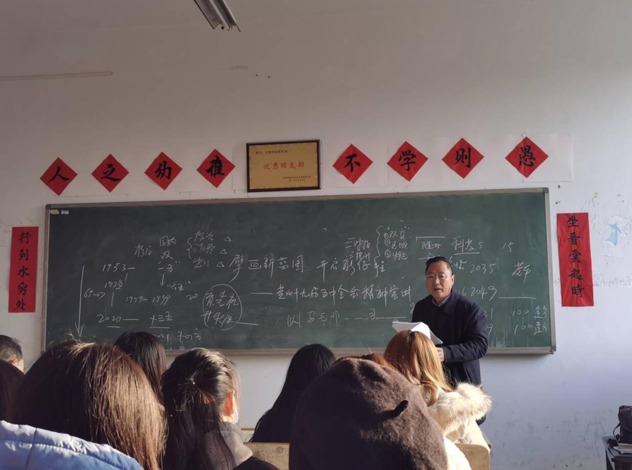 李德荣从党的十九届五中全会精神解读、职业教育新机遇和学院十四五规划等三个方面深入浅出的进行了宣讲,引起在现场党员和学生的强烈共鸣,尤其是他铿锵的声音和潇洒的板书,吸引了大家的眼球,有的学生在听课笔记上把主讲者写成李德荣老师。