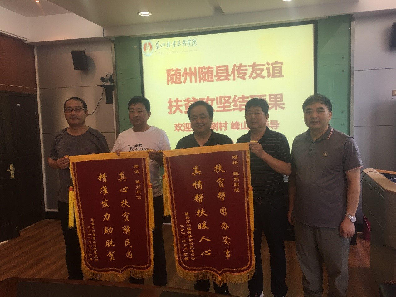 9月12日上午,bat365原驻点帮扶村随县万和镇黄林树村和峰山村两委班子专程到bat365,将“脱贫帮困办实事,真情帮扶暖人心”“真心帮扶解民困,精准发力助脱贫”的锦旗送到bat365,感谢bat365在帮扶工作中真心实意为两个村的老百姓办实事、做好事、解难事。