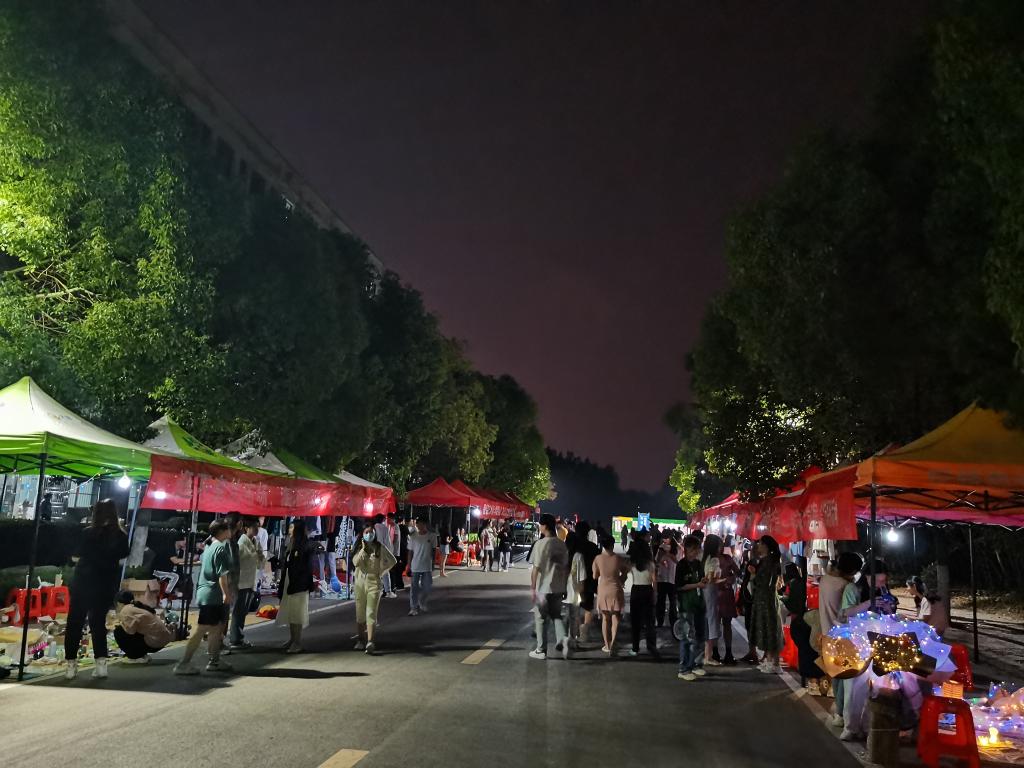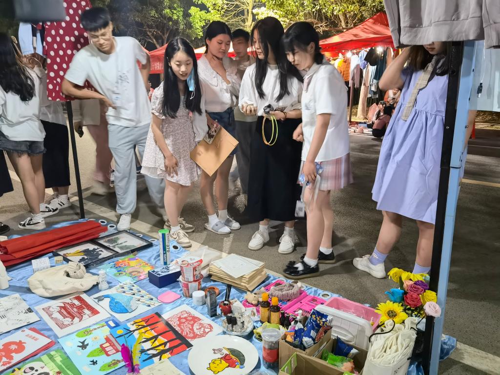 5月5日,学生公寓2号楼门口格外热闹,22个帐篷下挂着彩灯。现场有摊主的吆喝声、有捐赠同学登记的身影、有为残障儿童义卖筹集善款的学生干部、也有买主购物的欢乐声......
