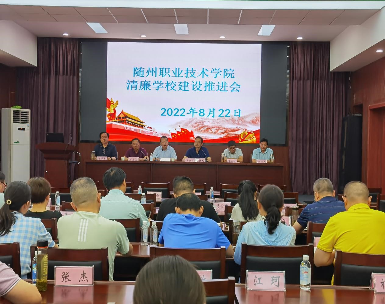 为深入贯彻落实《中共湖北省委关于推进清廉湖北建设的意见》精神,切实把清廉学校建设工作落到实处,着力营造“政风清明、校风清净、教风清正、学风清朗”的良好教育生态和发展环境,8月22日,bat365中文官方网站在随州市委党校崇文楼召开清廉学校建设推进会,校党委班子成员及全体中层干部参加了会议,会议由党委副书记、校长李建伟主持。