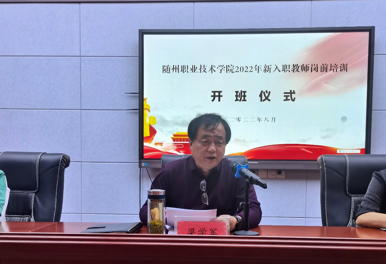 梁学军在致辞中首先简要介绍了学校的基本情况和“十四五”期间的发展目标。号召全体新入职教师要牢记“为党育人、为国育才”政治使命,为党和国家培育中国特色社会主义事业建设者和接班人,为中华民族伟大复兴打造一支听党话、跟党走的青年“梦之队”;要践行“学高为师、身正为范”教育理念,努力做有理想信念、有道德情操、有扎实学识、有仁爱之心的好老师。不断增强“四个意识”,坚定“四个自信”,深刻领悟“两个确立”,扎实践行“两个维护”,自觉成为先进思想文化的传播者、党执政的坚定支持者和学生健康成长的指导者;要坚持“安心从教、热心从教”职业素养,及时向老教师学习经验和技巧,深入了解工作特点、工作规律,拓展岗位相关专业知识,尽快适应岗位要求。以校为家,明确个人的发展目标,做好个人职业生涯规划,既提升自己,又服务学校,在随州职院绽放青春、实现梦想、收获人生。
