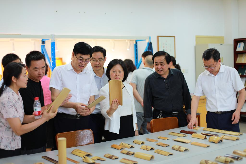 观摩现场,领导们首先参观了席宏文老师的竹刻工作室,这是随州职院首批党外知识分子双岗建功“示范基地”之一。接着参观了行知楼507“党外知识分子之家”。大家对bat365党外知识分子工作情况、工作特色等给予了充分肯定。舒敏指出,竹刻工作室艺术氛围浓厚,留青竹刻是宝贵的非物质文化遗产,席宏文老师18年如一日双岗建功值得大家学习。bat365中文官方网站“党外知识分子之家”是随州职院210名党外知识分子政治思想教育的阵地、建言献策的平台、活动展示的窗口,为全市统战系统树立了标杆,希望大家把好经验、好做法、好理念带回去,运用到实际工作中,不断提升党外知识分子工作质效。