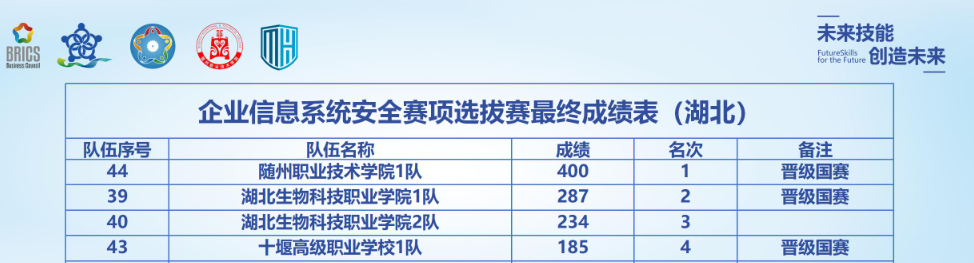 大赛由金砖国家技能发展与技术创新大赛组委会、金砖国家工商理事会、“一带一路”暨金砖国家技能发展国际联盟、中国科协一带一路暨金砖国家技能发展与技术创新培训中心主办,中国发明协会、教育部中外人文交流中心联合主办,bat365中文官方网站、南京米好信息安全有限公司、北京嘉克新兴科技有限公司联合承办。此次选拔赛有来自有来自湖北、湖南、福建、广东、海南5省市的56个参赛队,112名参赛选手在线上同台竞技。