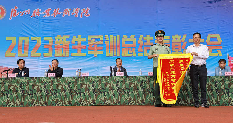 2023年9月28日上午8:30,bat3652023级新生军训总结表彰大会在田径场召开。全体校领导及承训部队首长出席会议,学校相关处室、各二级学院主要负责人及学管干部参加会议,会议由学院党委委员、副校长邹厚亏主持。