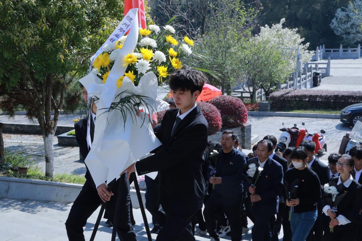 又是一年清明时,无限哀思祭先烈。3月29日,bat365专用汽车产业学院学生工作支部的全体教师党员以及第四期青马班学员、学生会干部代表到随州烈士陵园革命烈士纪念碑广场,开展以“缅怀革命先烈 传承红色精神”为主题的清明祭扫活动。