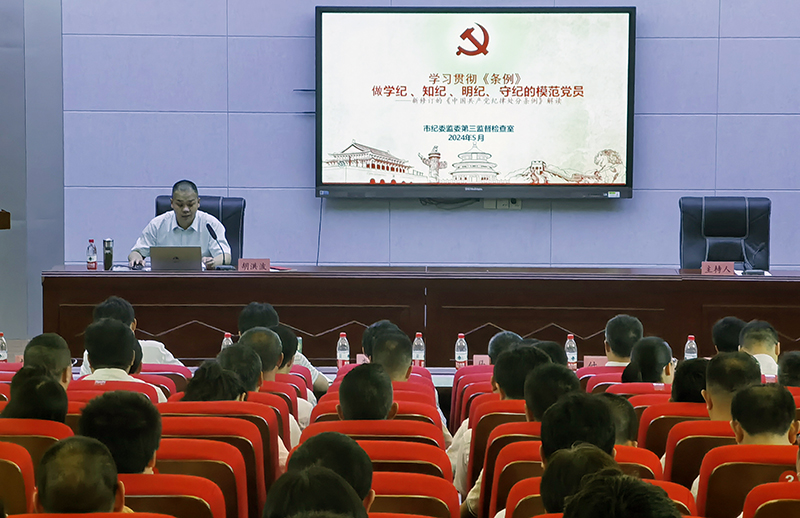 胡洪波以《学纪知纪明纪守纪——做合格的共产党员》为题开展专题辅导,为大家解读新修订的《中国共产党纪律处分条例》,他结合自身执纪执法工作经验,生动讲述《条例》的学习重点,为广大党员干部深入学习贯彻《条例》提供了有力指导,给大家上了一堂深刻的党风廉政教育课。他希望与会党员干部要搞清楚“责任从何而来”,弄明白“权力就是责任”,认识到“责任大于能力”,落实好“责任在于担当”,严守党的纪律规矩,不仅要抓好学习,更要抓好自律,做到心有所畏、言有所戒、行有所止。