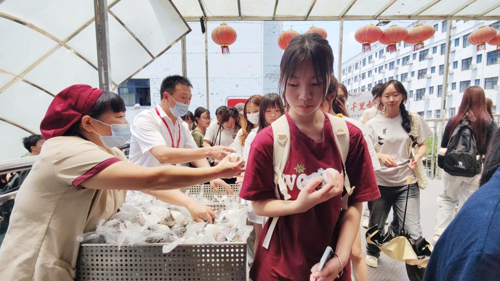 “中午就餐来食堂领到装有粽子和咸鸭蛋的端午节礼包,忍不住剥开尝尝,满口留香,家的温暖油然而生”,一位同学领到粽子后激动地说。同学们也都纷纷在自己的社交平台上“晒幸福”。