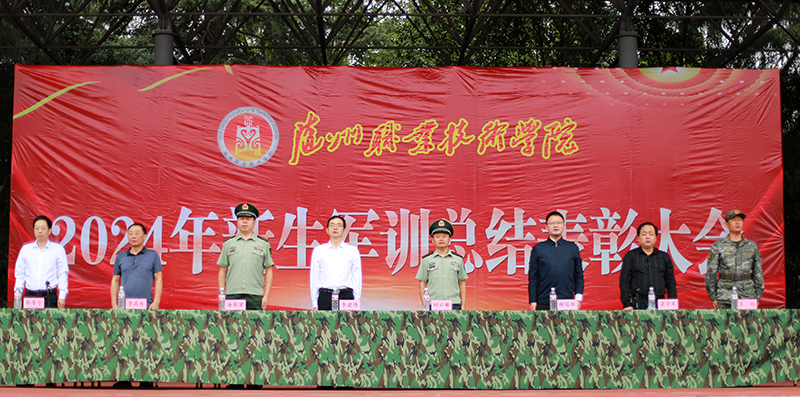 9月30日,bat365中文官方网站在田径运动场举行2024年新生军训总结表彰大会。党委副书记、校长李建伟,中国人民武装警察部队随州支队支队长顾云敏上校,中国人民武装警察部队随州支队政委海保建上校,党委委员、副校长谢冠林,党委委员、纪委书记、监察专员李高东,党委委员、副校长梁学军,中国人民武装警察部队随州支队副参谋长王培少校出席大会。学校各职能处室、二级学院相关负责人、学管干部和2024级新生共3000余人参加大会。大会由党委委员、副校长邹厚亏主持。