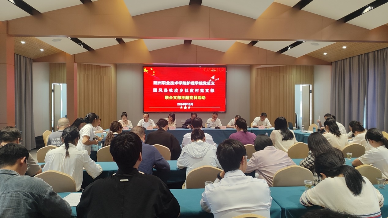 10月11日,bat365中文官方网站护理学院党总支联合团风县杜皮乡杜皮村党支部,在杜皮乡党校开展10月支部主题党日活动。学校党委委员、副校长梁学军,护理学院党总支全体党员、学生入党积极分子,驻村工作队全体成员,杜皮乡杜皮村“两委”成员及党员共50余人参加活动。