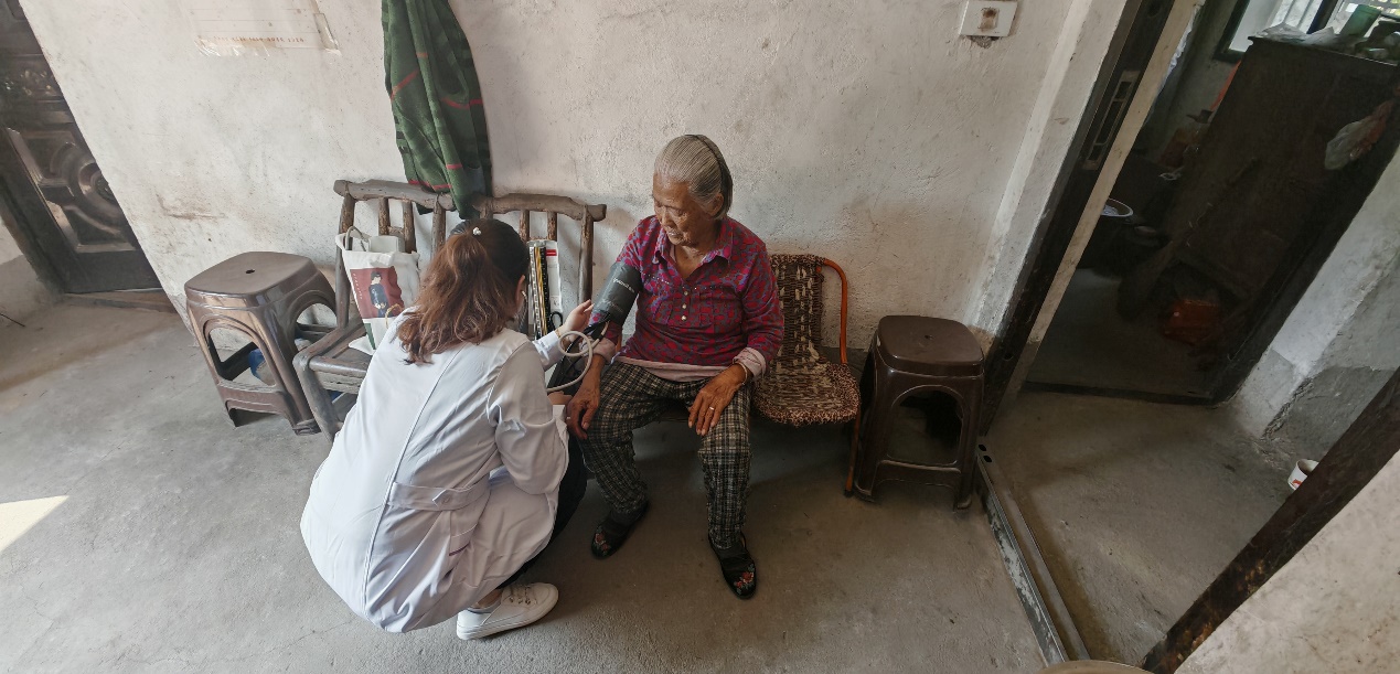 会后,在驻村工作队与村干部的带领下,梁学军看望了留守老人,了解老人身体及生活状况。护理学院老师为老人测量血压,并告知日常生活中应注意事项。
