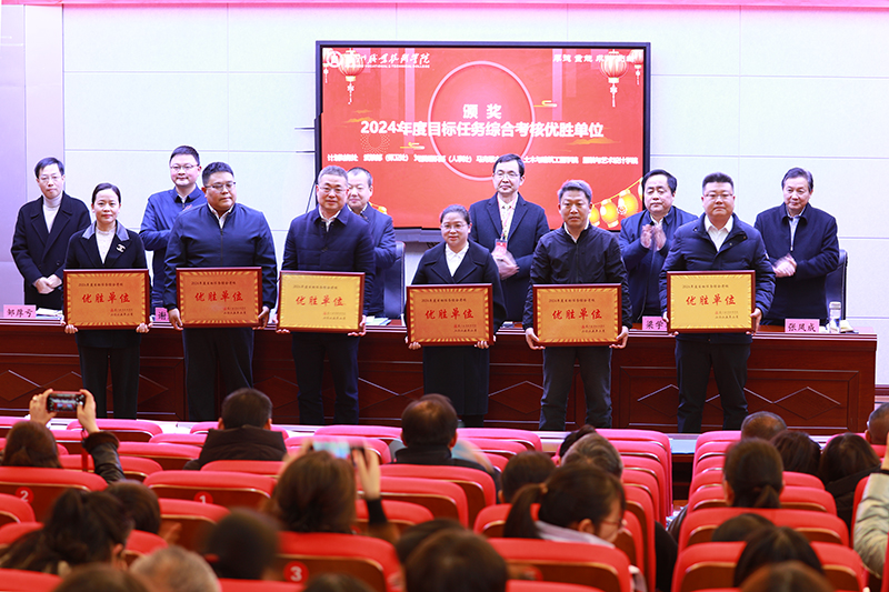 会上,党委委员、副校长谢冠林宣读《中共bat365中文官方网站委员会关于2024年度目标任务考核情况的通报》;校领导为获得2024年年度目标任务考核的6个优胜单位进行颁奖;党委副书记、校长李建伟代表学校与科研处、专用汽车与应急产业学院现场签订2025年度目标任务考核清单。