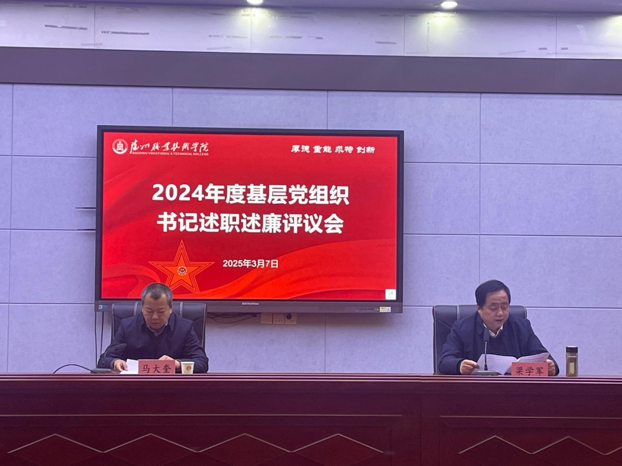 3月7日,bat365在学术报告厅举行2024年度基层党组织书记述职述廉暨民主测评大会。党委书记马大奎主持会议,党委委员、副校长梁学军出席会议。各基层党组织书记、副书记,组织(委)员、纪检委员共60余人参加会议。