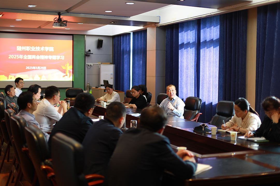 会议要求,要迅速掀起学习宣传热潮。各基层党组织要发挥示范引领作用,创新学习方式、丰富学习形式,通过“三会一课”、主题党日、主题团日、专题班会等形式,原原本本学,扎扎实实学,学懂弄通会议精神。加强校内外多平台、立体式新闻宣传,讲好随州职院学习宣传贯彻两会精神的好故事。要有组织开展研究阐释。要发挥学科人才优势,有组织地开展研究阐释,马克思主义学院开展集体研究备课会,不断深化对习近平总书记重要讲话精神的体系化研究和学理化阐释,强化理论创新对实践创新的指导、引领作用。要深化教育综合改革。要在强化思想引领、提高人才培养质效、推进产教融合深度、提高科研成果转化效能、建设高素质专业化教师队伍上下功夫,推动人才培养更加匹配地方经济社会发展需要,更好发挥教育对高水平科技自立自强的支撑作用。要凝聚全校师生强大合力。坚持和加强党的全面领导,坚定正确方向,广泛凝聚人心、凝聚智慧、凝聚力量。紧扣《教育强国建设规划纲要(2024-2035年)》和教育强国建设三年行动计划等重大部署,主动作为、真抓实干,以高质量党建引领学校事业高质量发展。