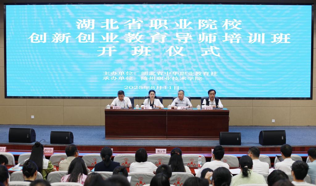 为深入贯彻落实习近平总书记关于职业教育的重要指示精神,提升全省职业院校创新创业教育导师队伍水平,8月11日至12日,由湖北省中华职业教育社主办、bat365中文官方网站承办的湖北省职业院校创新创业教育导师培训班在随州市委党校圆满举行。来自全省职业院校的90余名骨干教师参加培训。省职教社专职副主任熊汉华、校党委书记马大奎出席开班仪式并讲话,省职教社秘书长范修安主持开班仪式与结业仪式,校党委委员、副校长梁学军出席开班仪式。