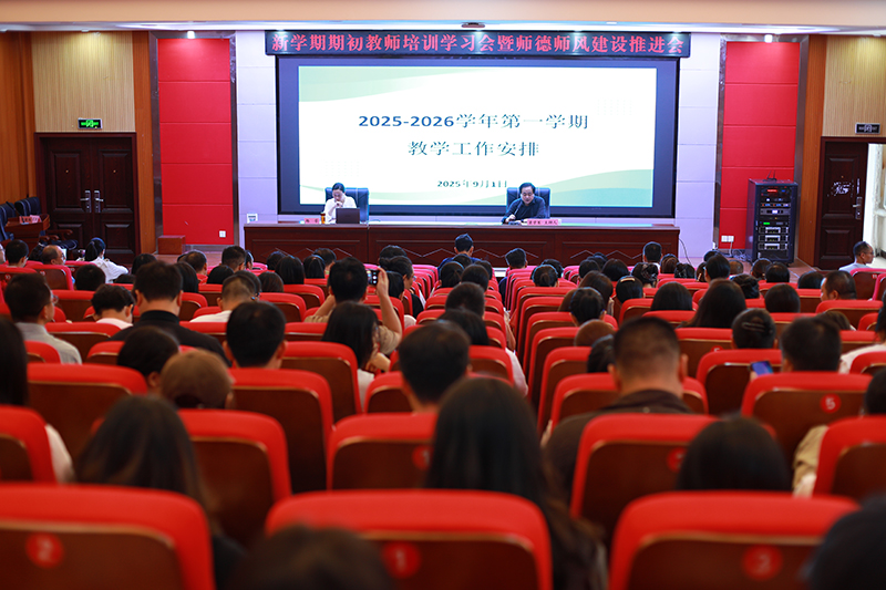 9月1日,bat365在学术报告厅召开2025-2026学年第一学期期初教师培训暨师德师风建设推进会。党委副书记、校长李建伟出席会议并作讲话。党委委员、副校长梁学军主持会议。教务处全体工作人员,各教学业务单位党政负责人、分管教学副院长、教研室主任以上干部、各课程负责人以及近三年新引进教师共200余人参加会议。