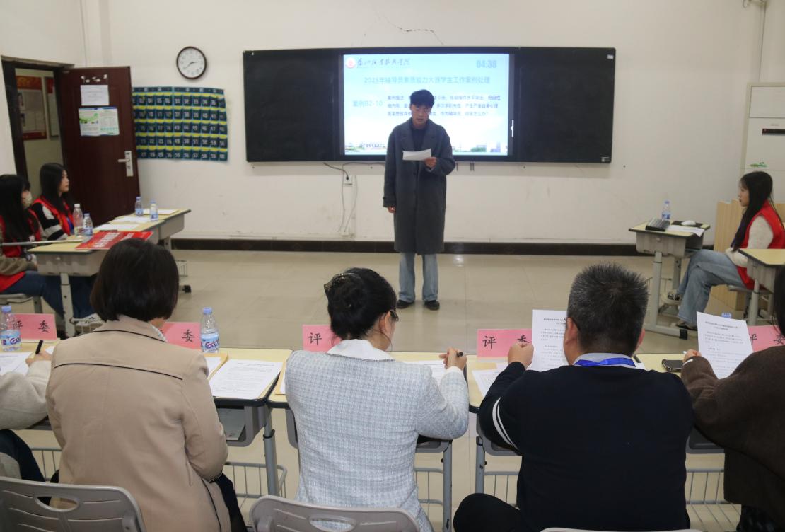 决赛环节,参赛辅导员需在规定时间内,对学生工作案例进行分析处理,并回答评委提问。案例涵盖思想价值引领、党团班级建设、学业就业指导、心理健康教育、危机事件应对及家校协同育人等多个维度,全面检验了辅导员的综合素养、应变能力和解决实际问题的水平。选手们思路清晰、对策得当,充分展现了扎实的职业功底和良好的精神风貌,赢得了现场评委与观众的高度认可。