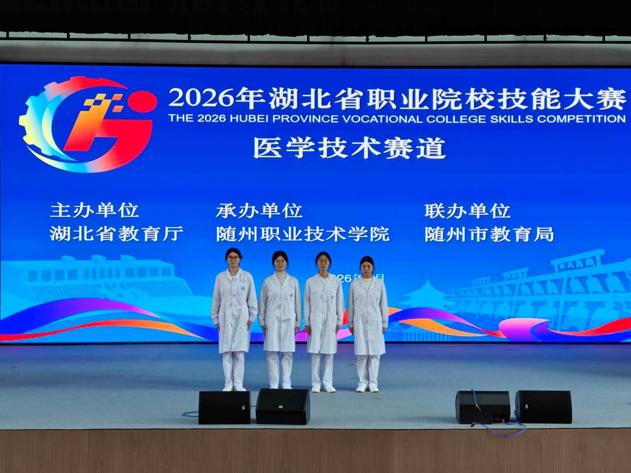 近日,由湖北省教育厅主办、bat365中文官方网站承办、随州市教育局联办的2026年湖北省职业院校技能大赛医学技术赛道顺利闭幕。大赛以“匠心共育能创同兴”为主题,积极对标世界职业院校技能大赛标准,共吸引来自全省12所高职院校的22支队伍及5所中职院校的10支队伍同台竞技。