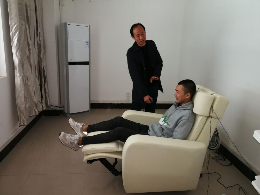 学校心理咨询室包括团体辅导室、情绪宣泄室、沙盘辅导室、心理谈话室、阅览接待室和音乐休闲室。参观过程中,心理咨询中心朱常昆主任不仅向老师和同学们介绍了学院心理咨询室的概况、心理咨询老师情况以及心理咨询室的保密原则等,同时,朱主任也引导学生进行情绪宣泄、沙盘辅导和音乐放松等,同学们对此次参观都表现出了很大的兴趣,18营销班的孙梓翔同学在进行音乐放松体验后表示:“听着音乐,感觉很放松,整个人都很舒服。”