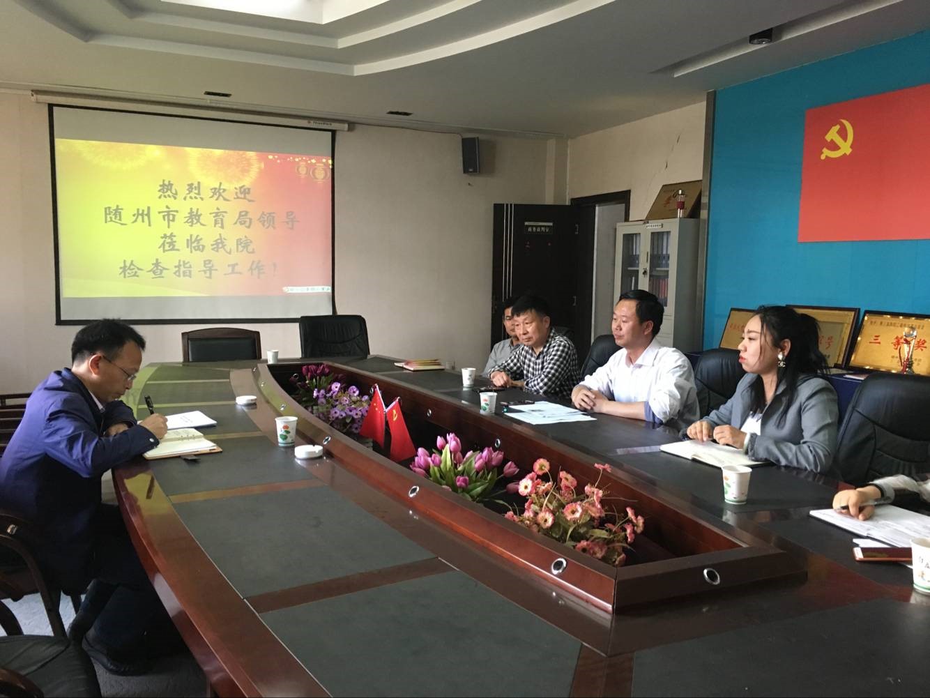 4月8日,随州市教育局职业教育管理科张明国科长到服装专业实训室进行实地考察我院设置中职服装设计与工艺专业基本条件。钟守兵院长介绍了院系发展建设情况,服装教研室主任廖凭凭简要说明了服装设计与工艺中职专业在bat365开设的必要性,介绍了本专业目前的教师团队建设、硬件实训设备配备、省内外的合作单位分布以及自2009年以来服装专业师生获奖情况。