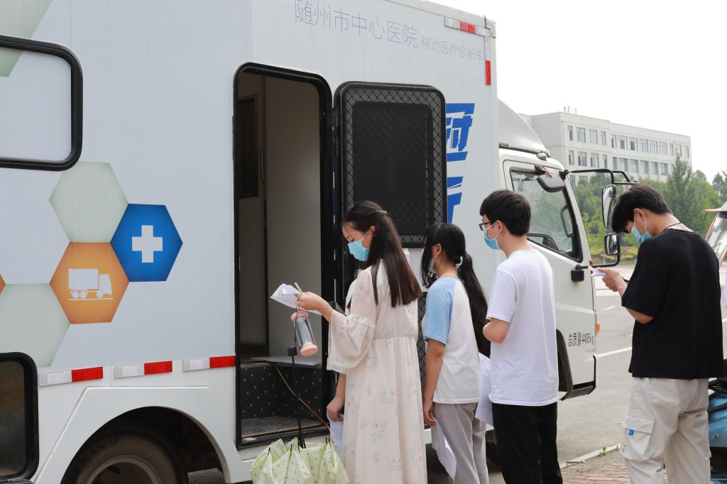 6月5日晨,随州市中心医院体检中心30余名医务人员带着体检设备,来到我院云桂楼指定位置,经过设备调试和试剂准备,8点整,学管老师带领300多名高考报名学生,有序来到各个检测项目点进行高考体检。