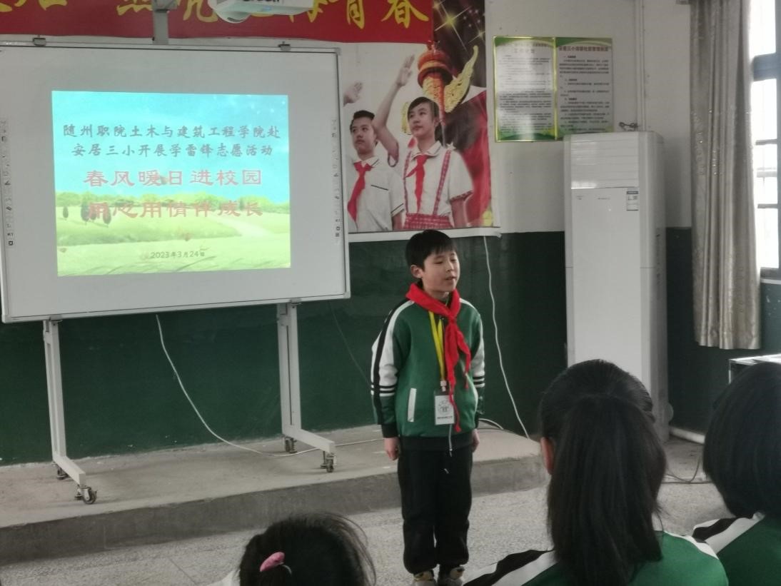 花也开,春已至,岁月向荣,万物勃发。3月24日,为增进青年大学生和寄宿学生的相互了解,为留守儿童送去温暖和关怀,激励孩子们认真学习、快乐生活,bat365土木工程与建筑学院一行60余名大学生志愿者来到随县安居镇第三小学开展“学雷锋献爱心”活动。