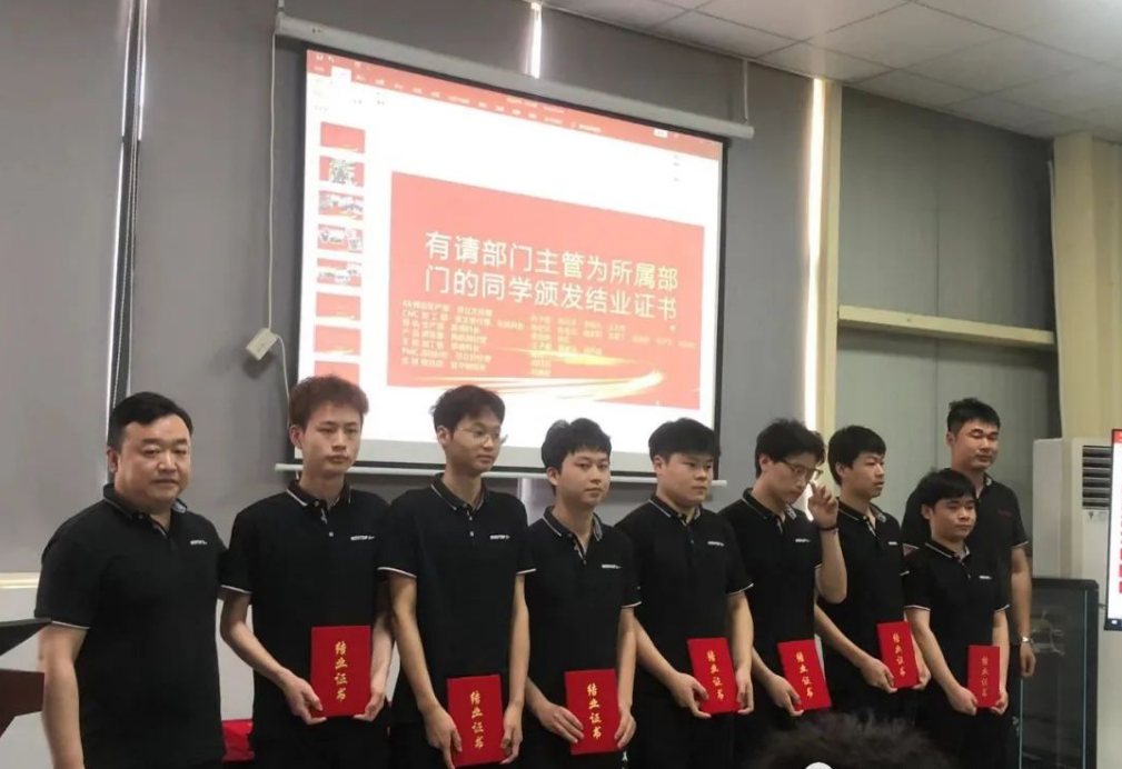 5月31日,天一智能订单班在培训室举办结业典礼,天一智能IE学院院长杨勇,专用汽车产业学院党总支副书记王军、学工办副主任朱红兵,企业部门主管、学员导师及全体学员参加结业仪式。