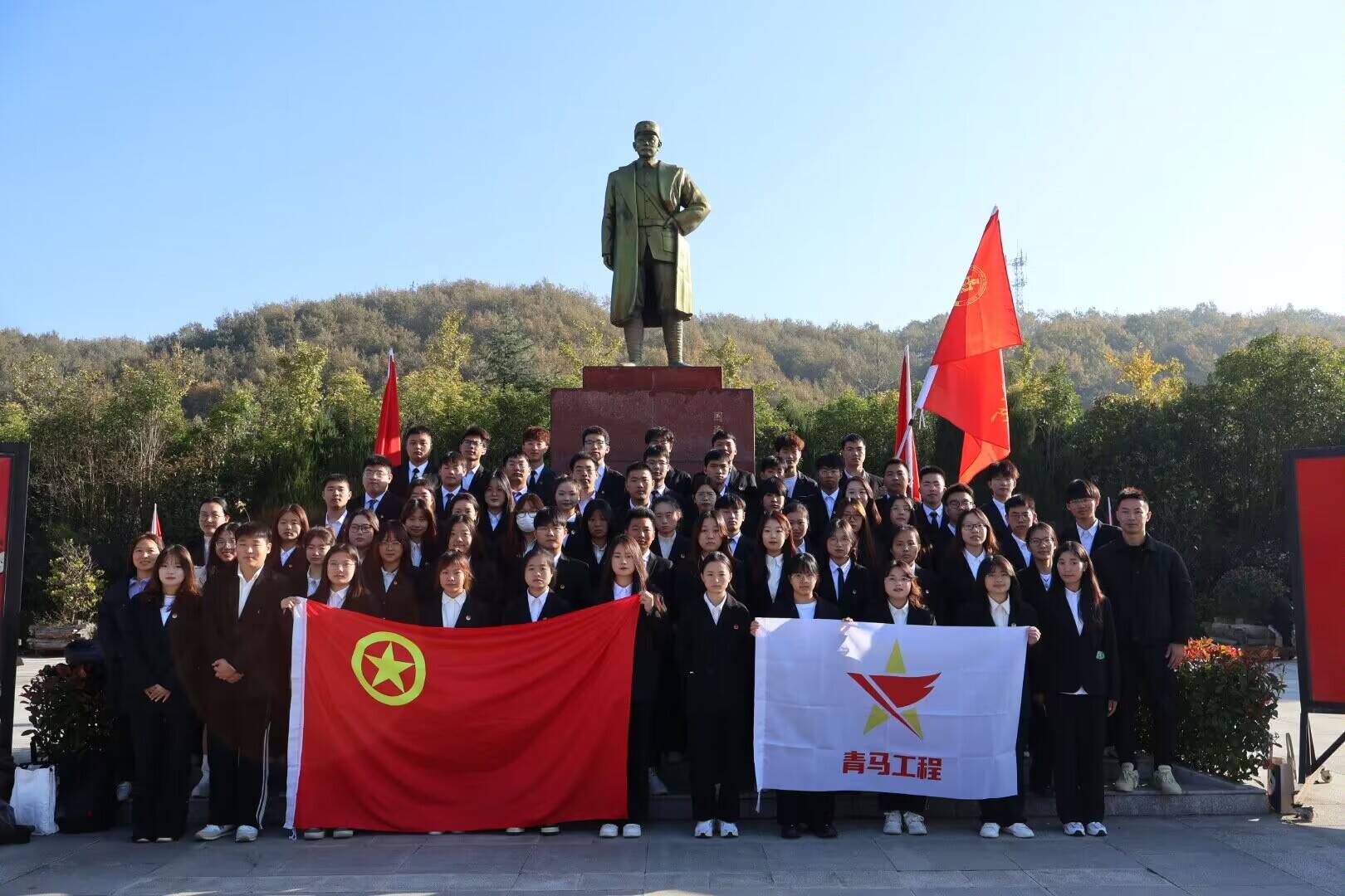 11月19日,第六期青马班全体学员前往随州市洛阳九口堰五师旧址纪念馆开展爱国主义教育活动。学员们在九口堰纪念馆广场重温入团誓词、向革命先烈“三鞠躬”,随后参观新四军五师司令部、政治部旧址,在新纪念园接受爱国主义教育和开展读原著、悟原理活动。