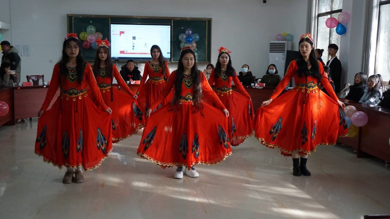 座谈会在新疆籍学生祖丽胡玛尔、木克热木、古丽其热等同学的优美舞姿中正式开启,彝族姑娘吉木子作一首曲调悠扬、节奏明快的彝族歌曲《阿依几几》,使活动气氛更加热烈。苟世玲、祖丽菲亚、阿洛阿牛、易思雨带来诗歌朗诵《民族团结中国梦》,她们用洪亮、张弛有度的声音表达出对维护民族团结的坚定信念。