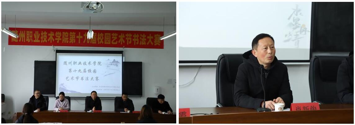 大赛开始,校党委宣传部、统战部部长肖新俊致辞,他首先对本次书法大赛给予了充分的支持与肯定。他说,本次大赛的举办,将进一步推动学校文化艺术的发展,也让书法这一传统文化走入校园生活,让更多的人了解书法之美,感受书法之韵。同时,他还表示,学校在“一站式”学生社区红石榴之家设立“墨香润心”书法育人名师团队工作室,每周一、三、五中午组织书法专家开展现场书写活动,师生相互学习、相互借鉴,共同提高书法水平。最后,他预祝本次书法大赛圆满成功,愿每一位参赛者都能赛出风格,赛出水平,共同书写属于这个时代的书法华章!