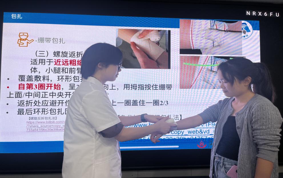 活动现场,学院急救培训讲师通过“理论讲解+模拟演练”相结合的方式,系统教授了心肺复苏的操作流程、气道异物梗阻的海姆立克急救法以及外伤止血包扎技巧。参训人员在指导下轮流使用人体模型进行实操练习,确保动作规范、步骤准确。
