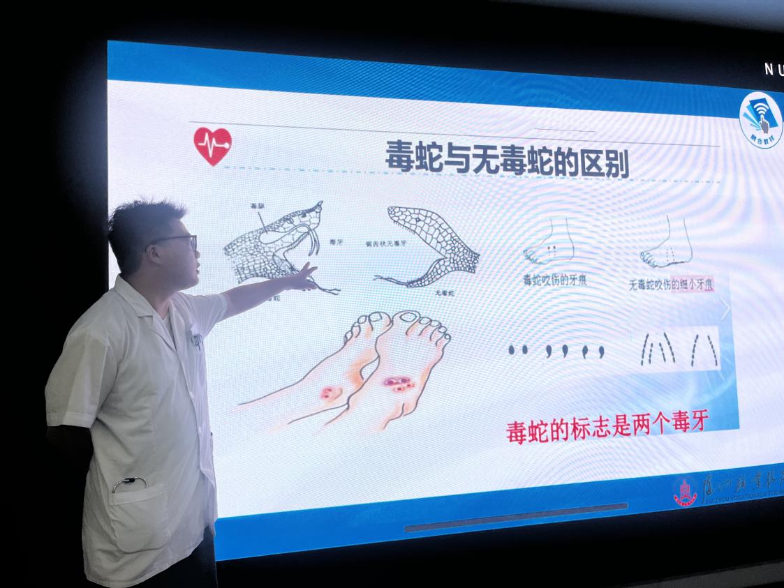 本次培训特别增设了“蛇咬伤应急处置”特色课程。针对随州地处鄂北,夏季蛇类活动频繁的地域特点,讲师详细讲解了毒蛇识别、伤口紧急处理、抗蛇毒血清应用等专业知识,并现场演示了加压绷带包扎法等实用技能,受到参训人员的一致好评。