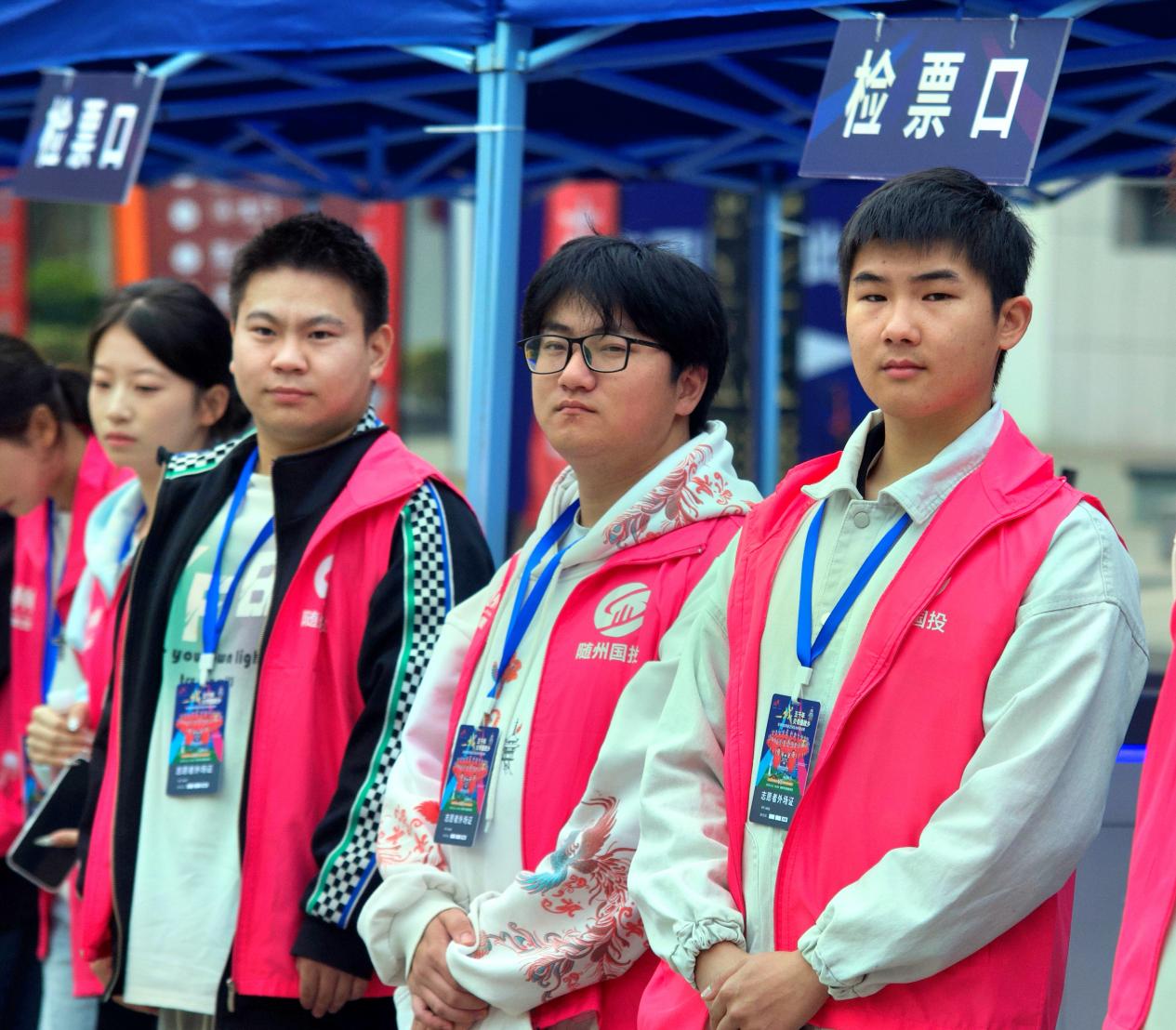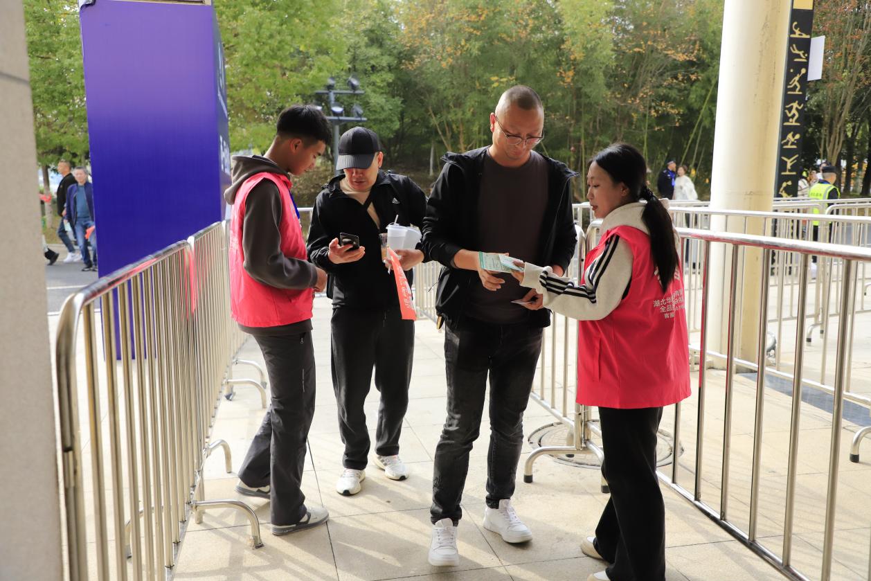 在体育馆的入场口,周旭等志愿者在随州特警的统一指挥下,耐心细致地解答观众的疑问,协助安检人员引导观众快速有序进场,现场秩序井然。在检票口,周恩等志愿者一丝不苟地核验票务信息,灵活处理各类突发情况;在看台区,他们不仅精准引导座位,更以饱满的热情带动观赛氛围,为赛事增色添彩。