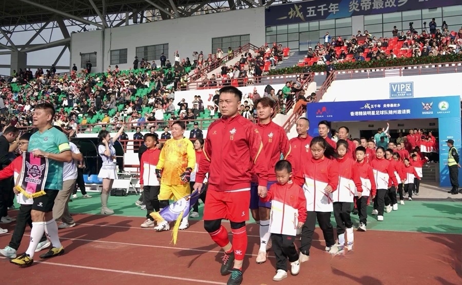 2025年11月1日,随州市滨湖体育场星光璀璨,香港精装明星足球赛随州邀请赛在此盛装开赛。陈百祥、王晶、陈浩民等香港艺人领衔的明星足球队与随州精英足球队联袂献上了一场精彩对决,近万名观众共享这场融体育、音乐与文旅于一体的视听盛宴。