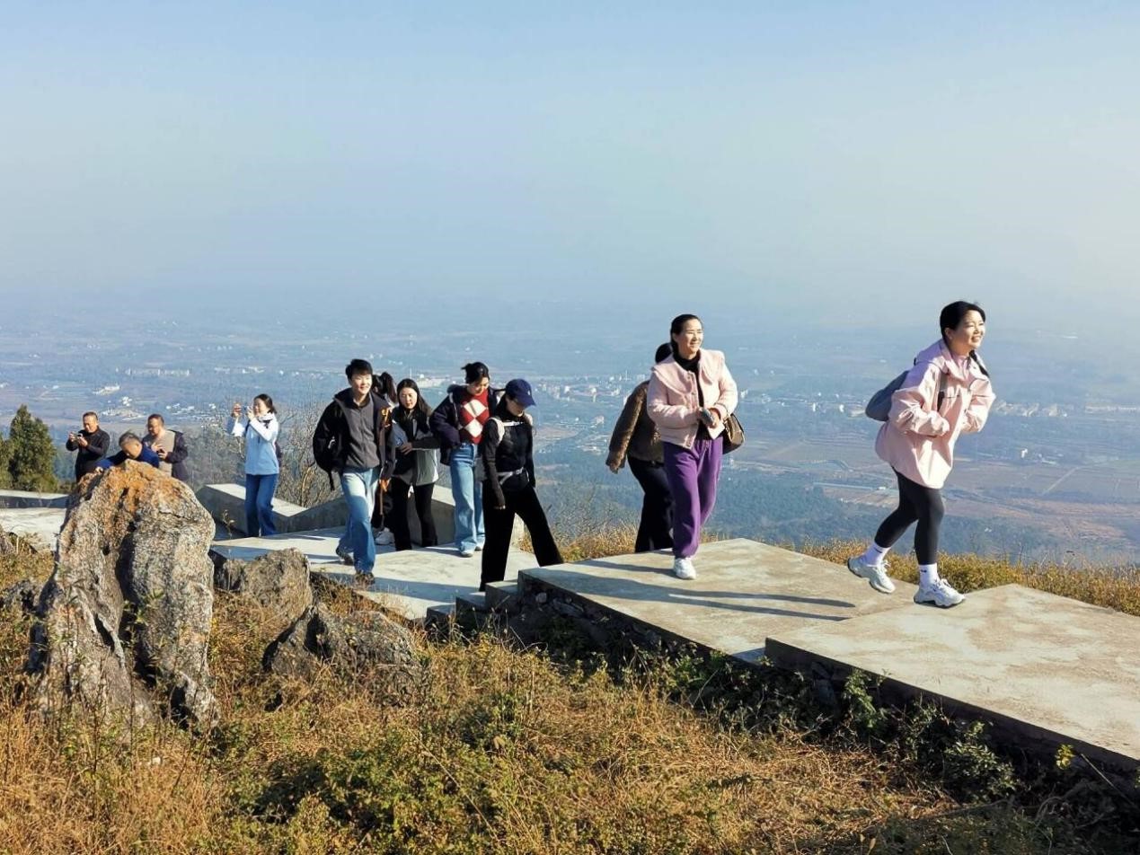 清晨,教师们集体乘车前往白兆山。途中大家交流融洽,气氛热烈。白兆山文脉悠长,是唐代诗人李白曾隐居之地。教师们沿着山道稳步前行,在登山过程中结合专业特点,探讨教学心得与艺术创作感悟,在人文景观与自然风貌中激发思维、汲取灵感。途中大家驻足观赏,拍摄记录沿途景致,并在山顶李白石像前集体合影留念。