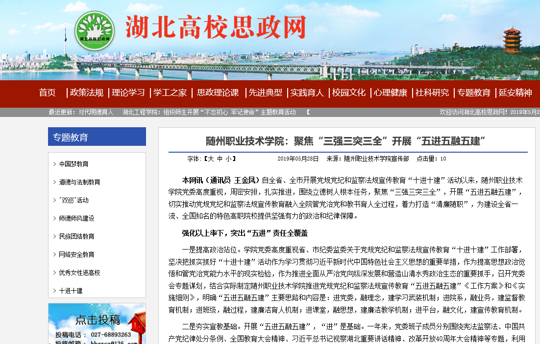 下一条:湖北高校思政网:bat365中文官方网站——随州市“十进十建”工作经验交流会在随州职院召开